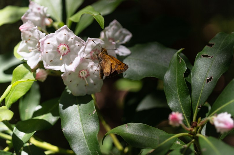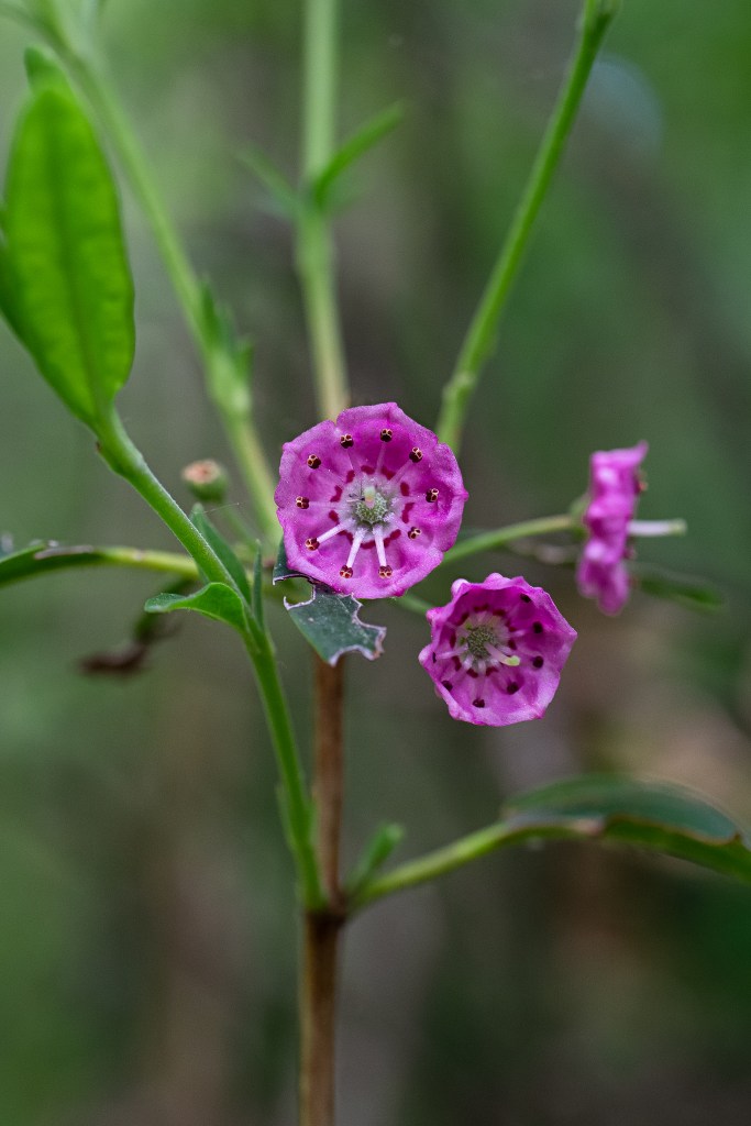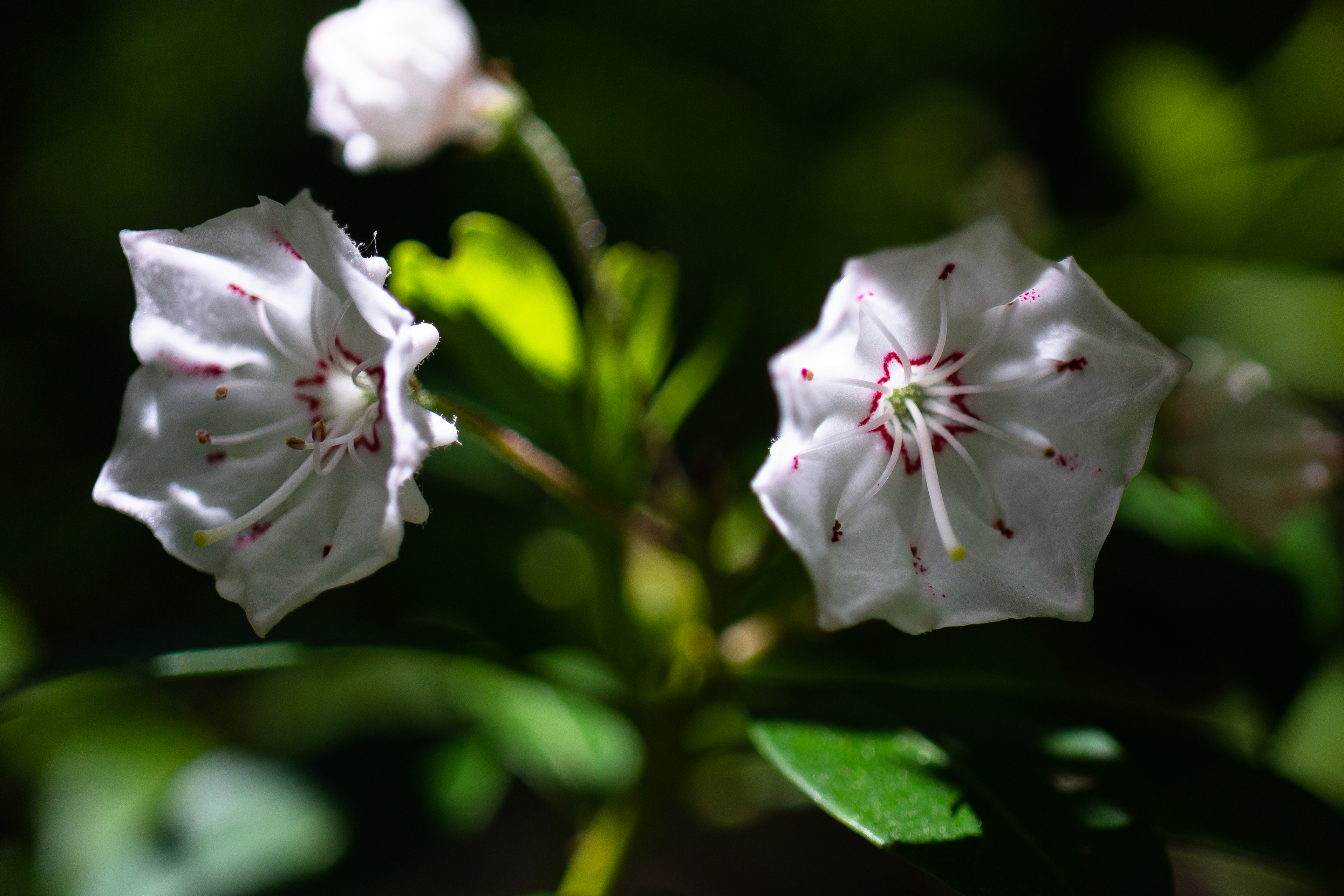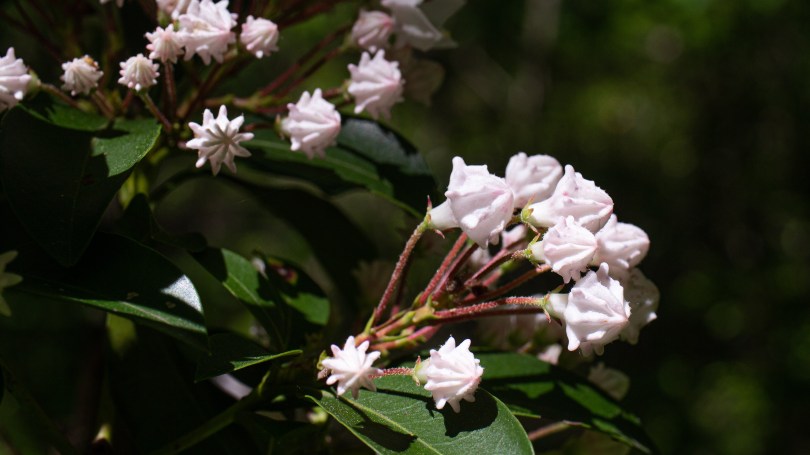 Mountain laurels are a broadleaf shrub native to Eastern US, from Maine to northern Florida. Flowers range from white to light pink and bloom from May to early June. The plant’s size is heavily dependent on its growing conditions. In Appalachia, it can grow as large as a tree. While in less ideal conditions, the plant remains a smaller size.