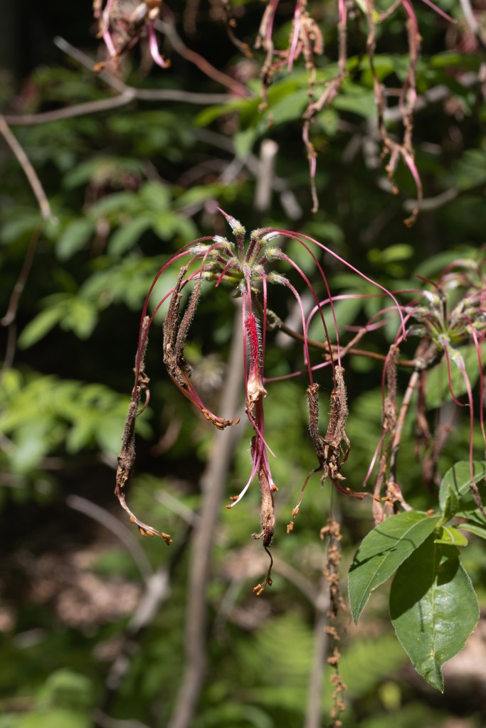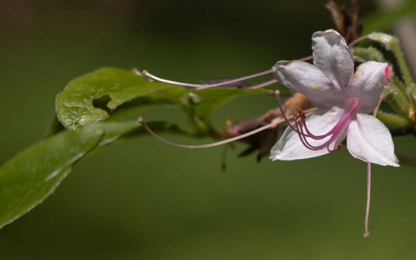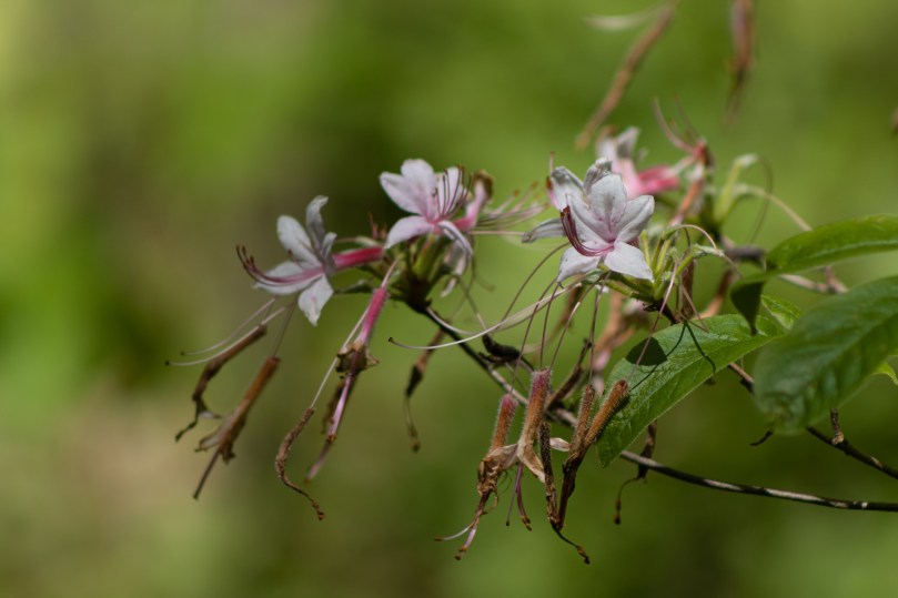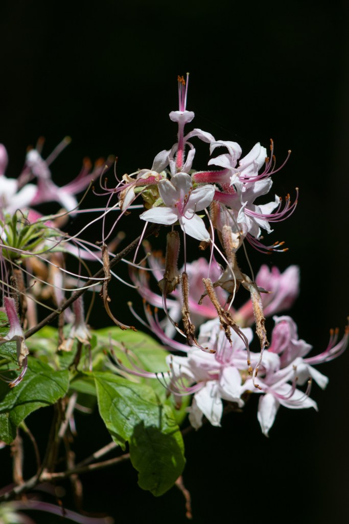 Rhododendron periclymenoides, the Pinxter flower or the pink Azalea, is a native azalea found along the eastern coast from southern New York to Georgia. They flower in the spring with showy pink blooms and long stamens with a sweet smell.