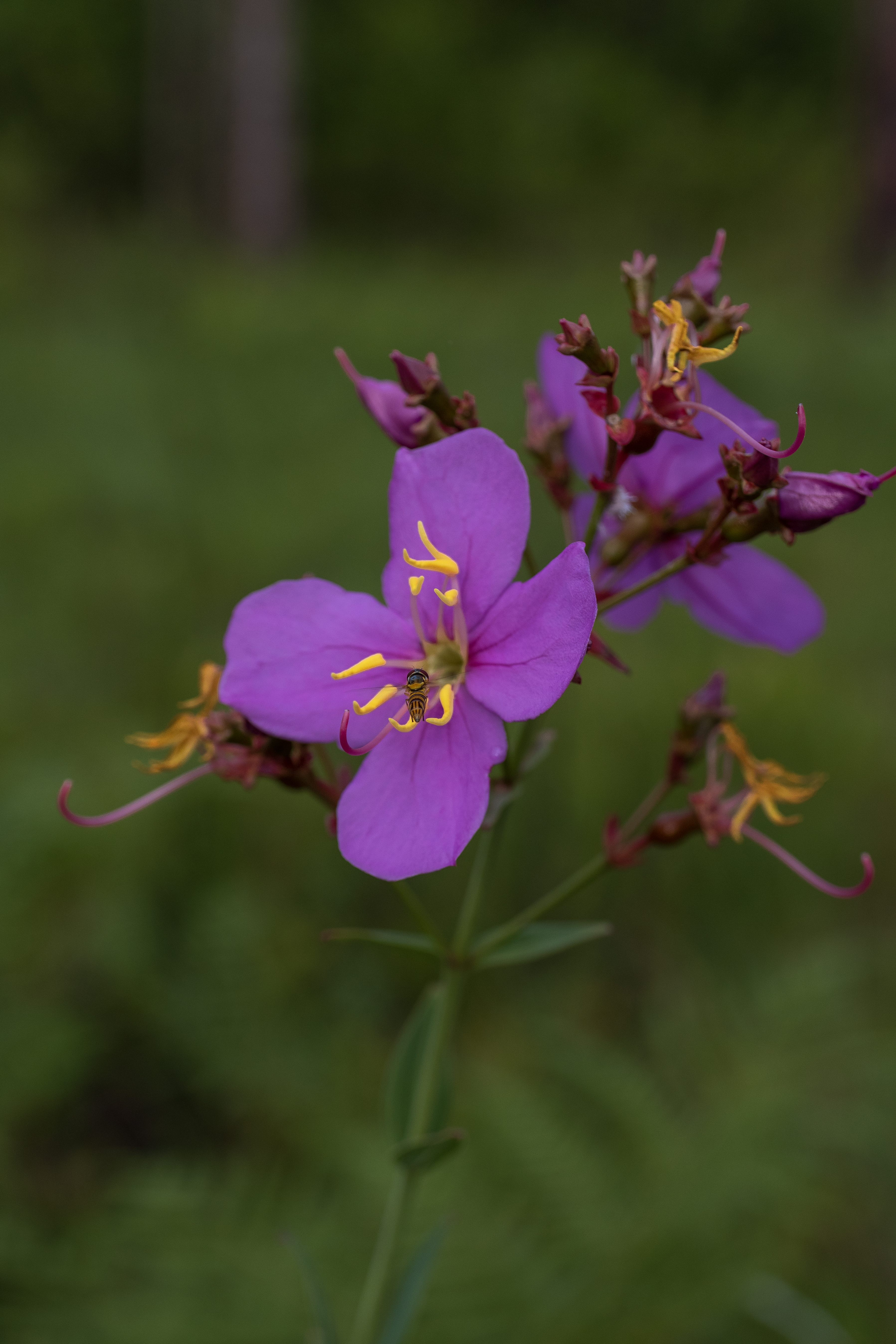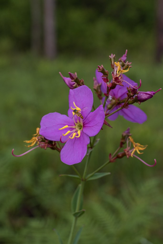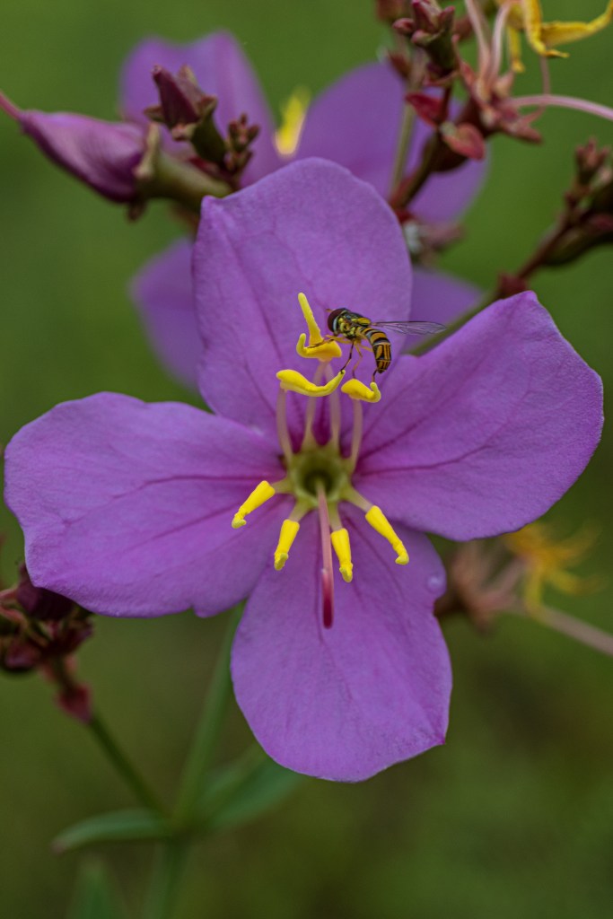 Savanna Meadowbeauty is a striking wildflower found from North Carolina to Florida, and west to Texas. In North Carolina they grow near the coast, these were growing in the green swamp preserve alongside various carnviorous plants and orchids. The flowers are striking and attract pollinators. I was lucky enough to photograph an Oblique Stripetail Hoverfly flying around flowers searching for a reward. Swipe through them to see what the hoverfly was up to!