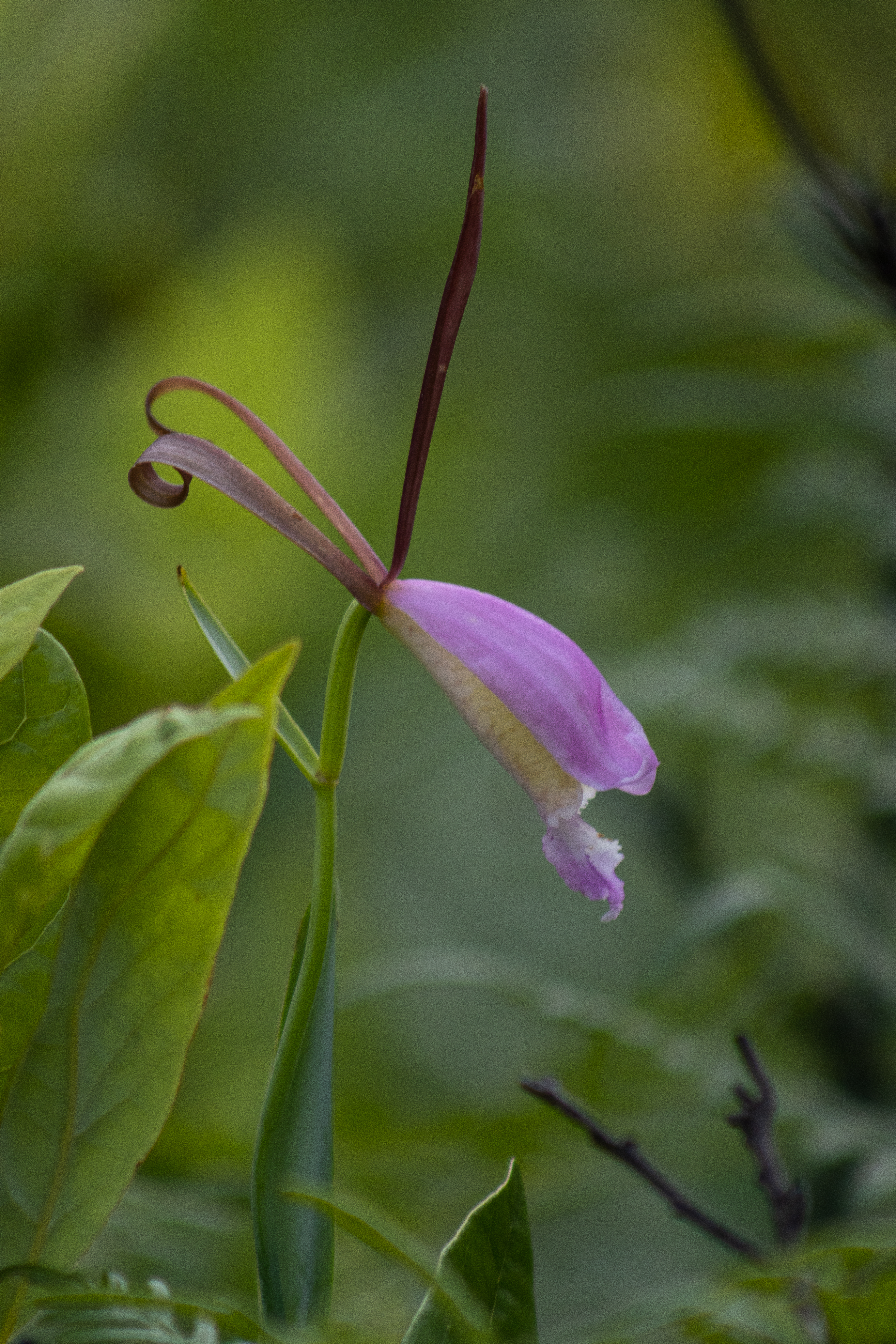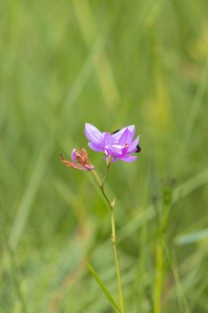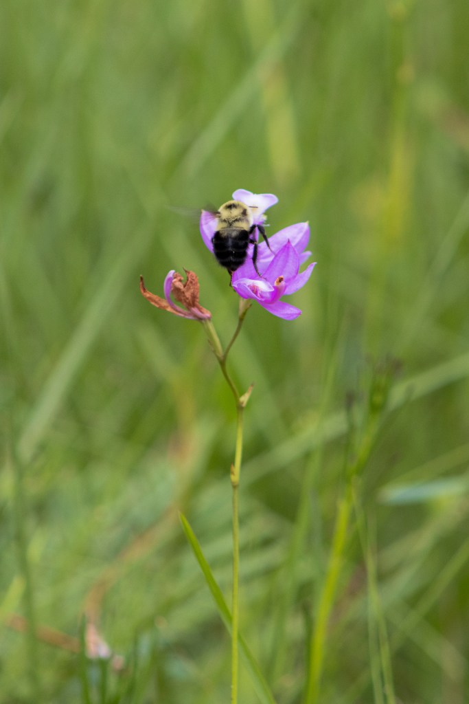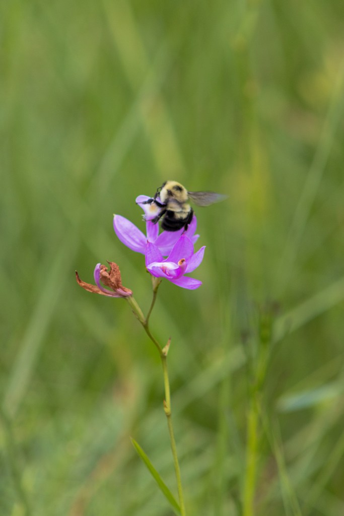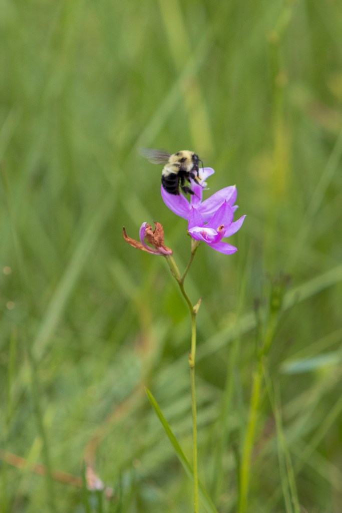 Calopogon, or the grasspink orchid, is a genus endemic to North America. The orchid is frequently found in wet, sunny bogs and marshy areas. The name is Greek and means “beautiful beard,” referring to the hairs found on its lips. Unlike most other orchids, the flowers of the Calopogon are non-resupinate.