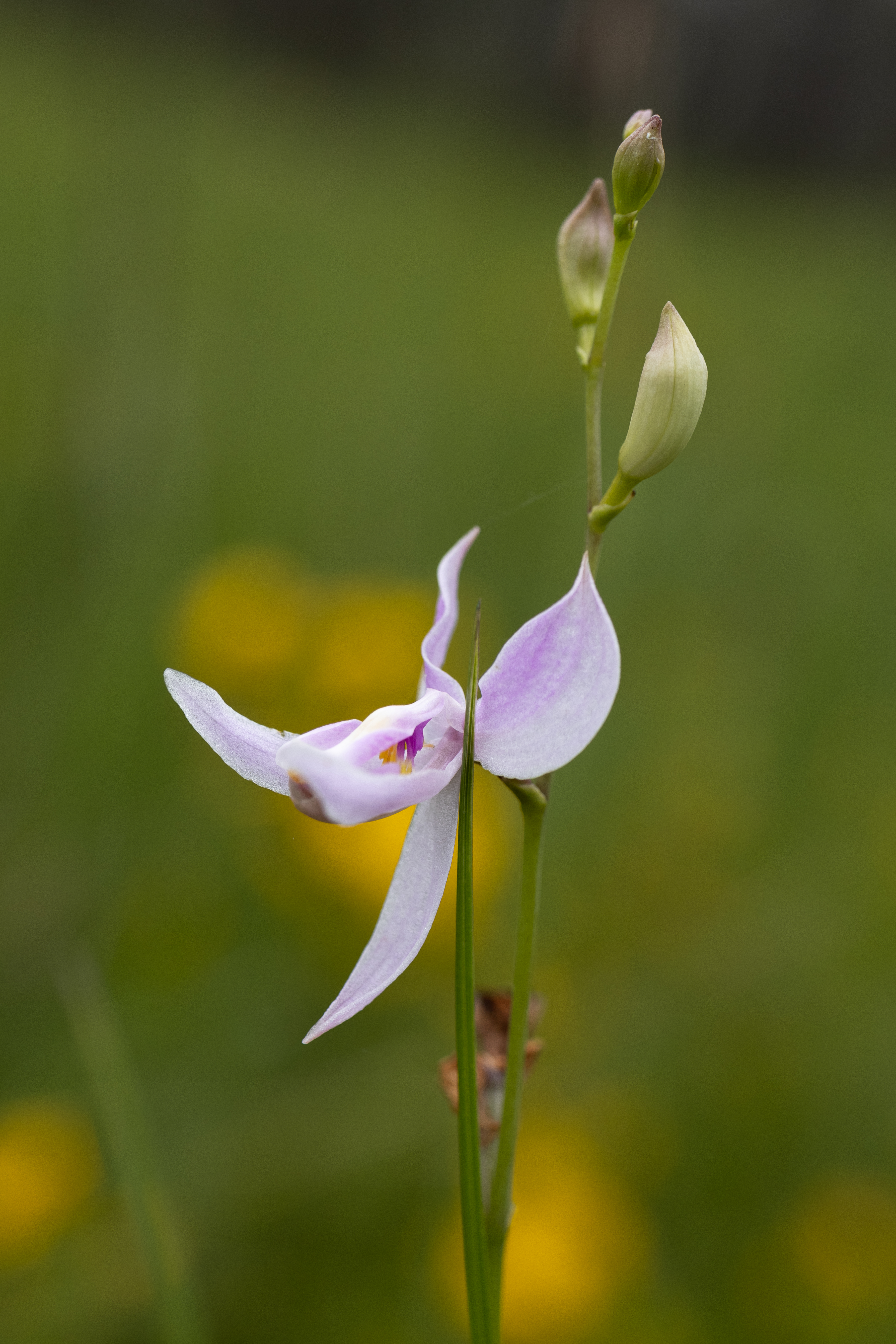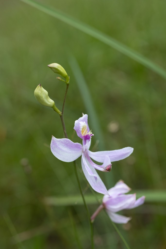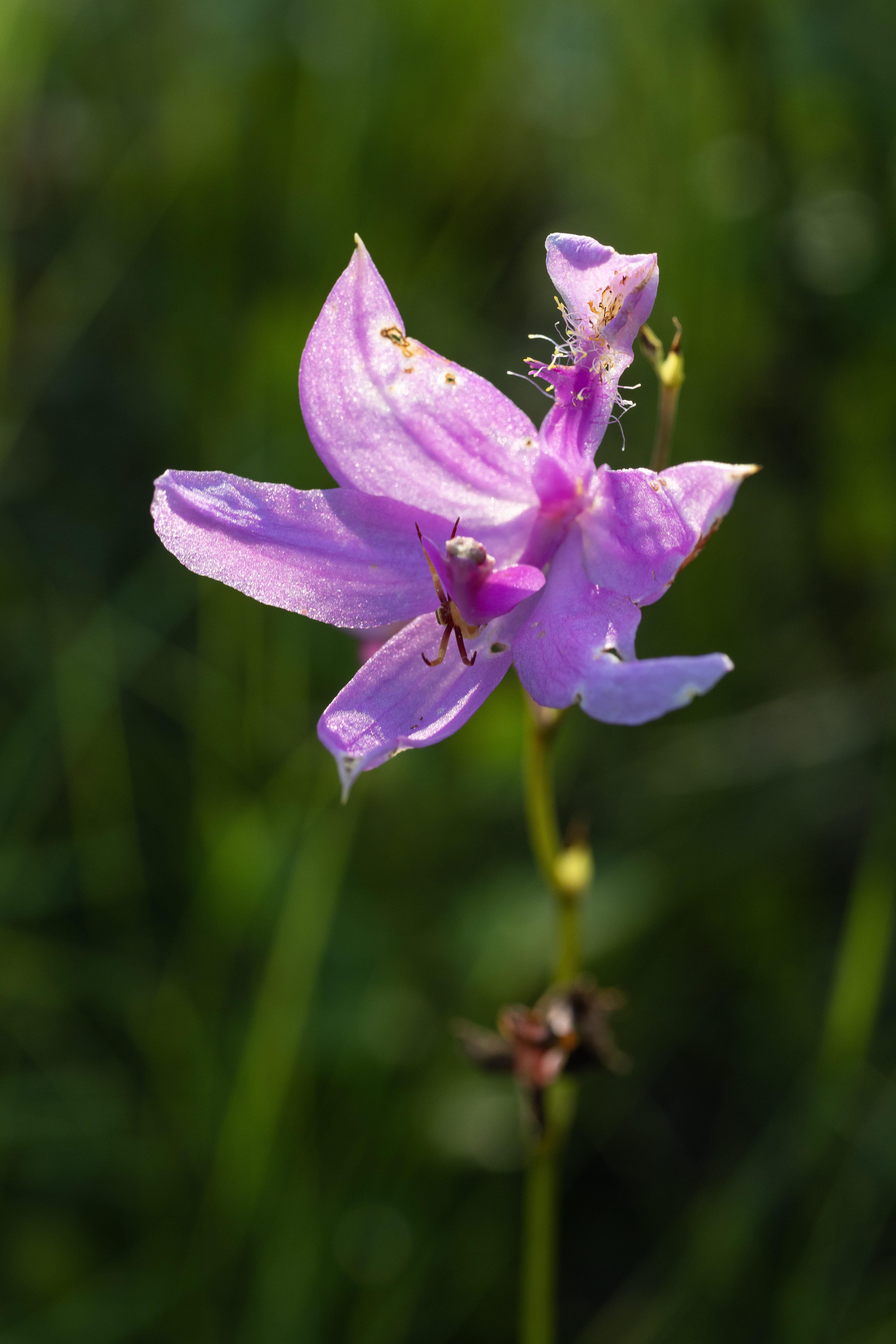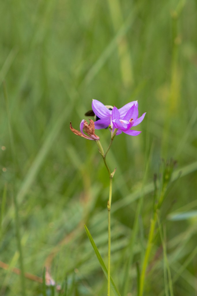 Calopogon, or the grasspink orchid, is a genus endemic to North America. The orchid is frequently found in wet, sunny bogs and marshy areas. The name is Greek and means “beautiful beard,” referring to the hairs found on its lips. Unlike most other orchids, the flowers of the Calopogon are non-resupinate.