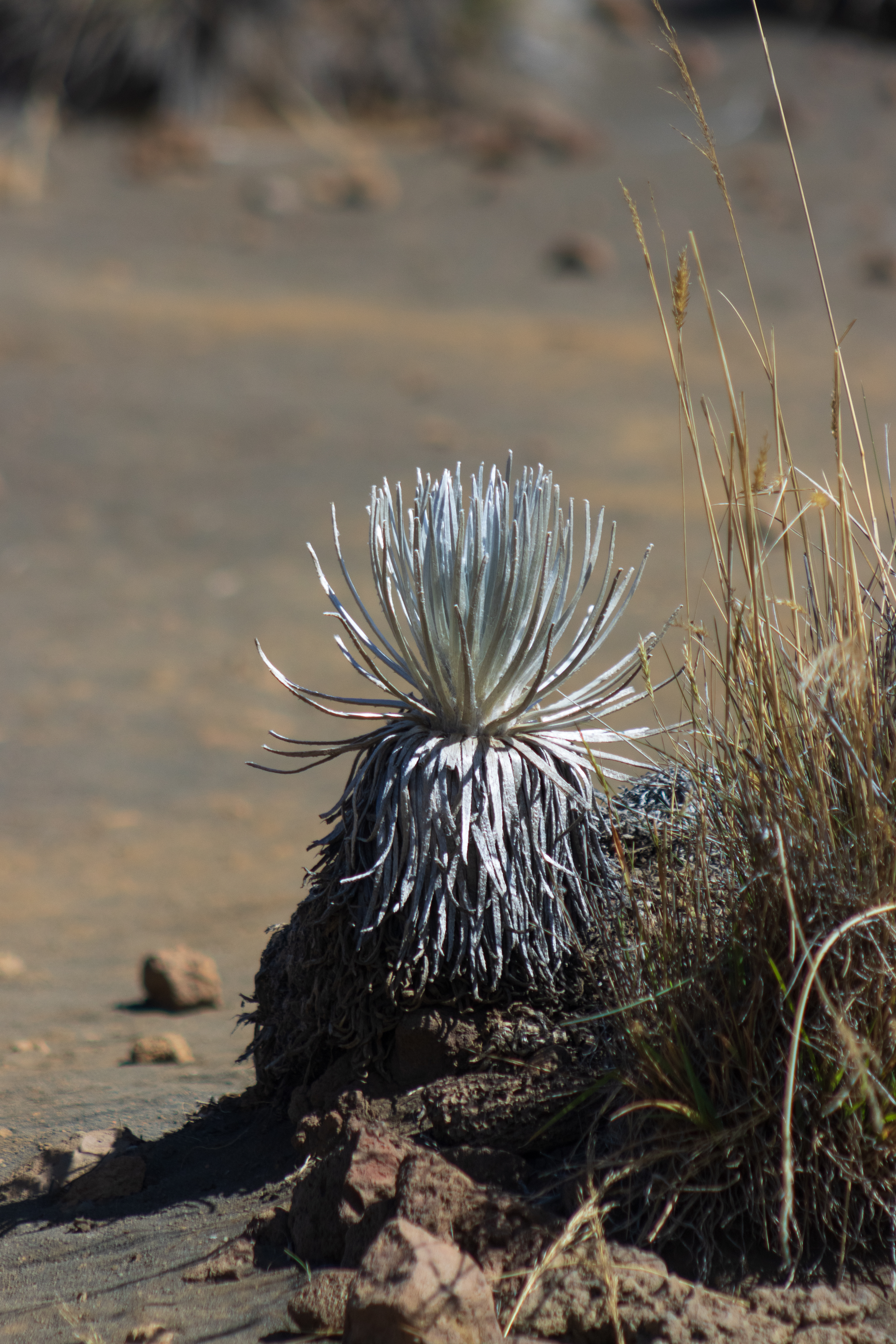 As is true for most island species, the two islands inhabited by the silverswords have produced two closely related subspecies. The Haleakala silversword grows around the volcano Haleakala in Maui. The Mauna Kea silversword is found around the peak of Mauna Kea on the big island. Efforts to save the Haleakala silversword have resulted in a resurgence of the plant under management, but the Mauna Kea has yet to see the same fate. Less than 50 of these plants continue to grow naturally in an inaccessible part of the Mauna Kea, saved from the cattle that have decimated its population. 750+ now grow under protection, many fenced off from livestock.