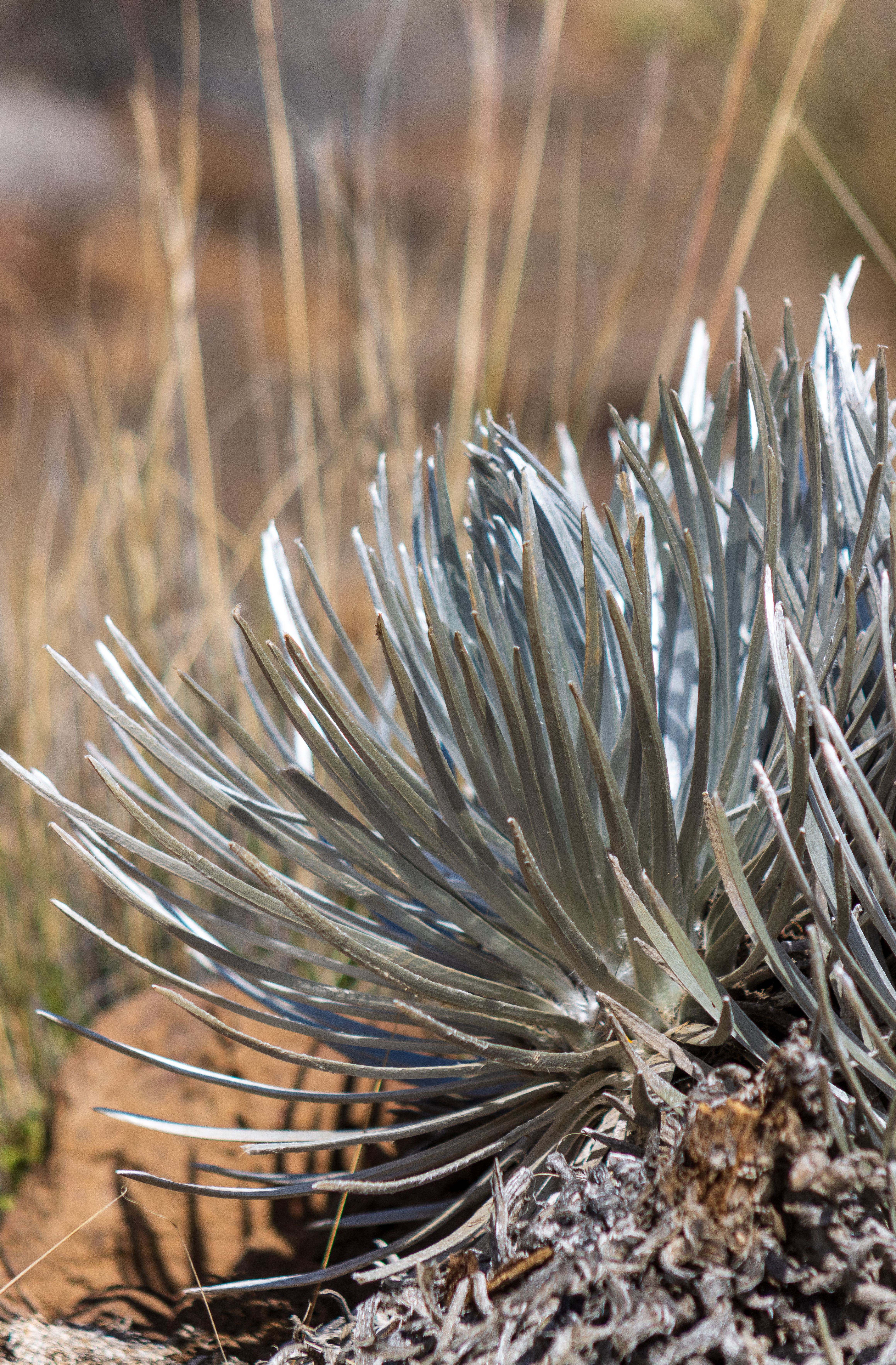 Three silverswords just done flowering and a large plant that should flower in the next few years!A young plant, far from maturitySome silverswords growing in clumps.A rosette opening up.