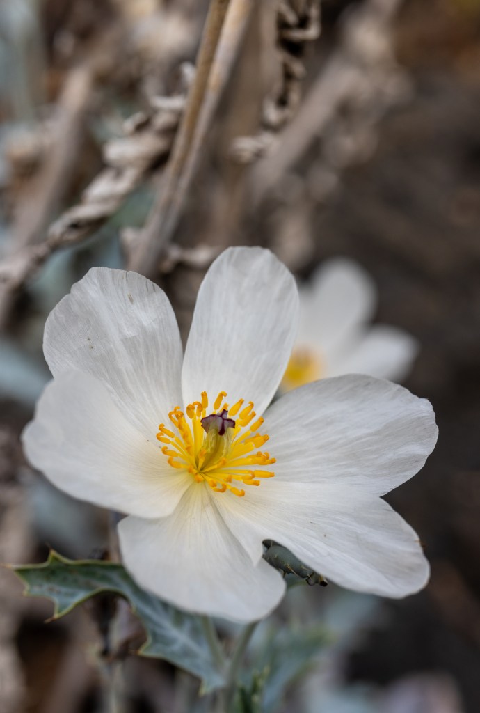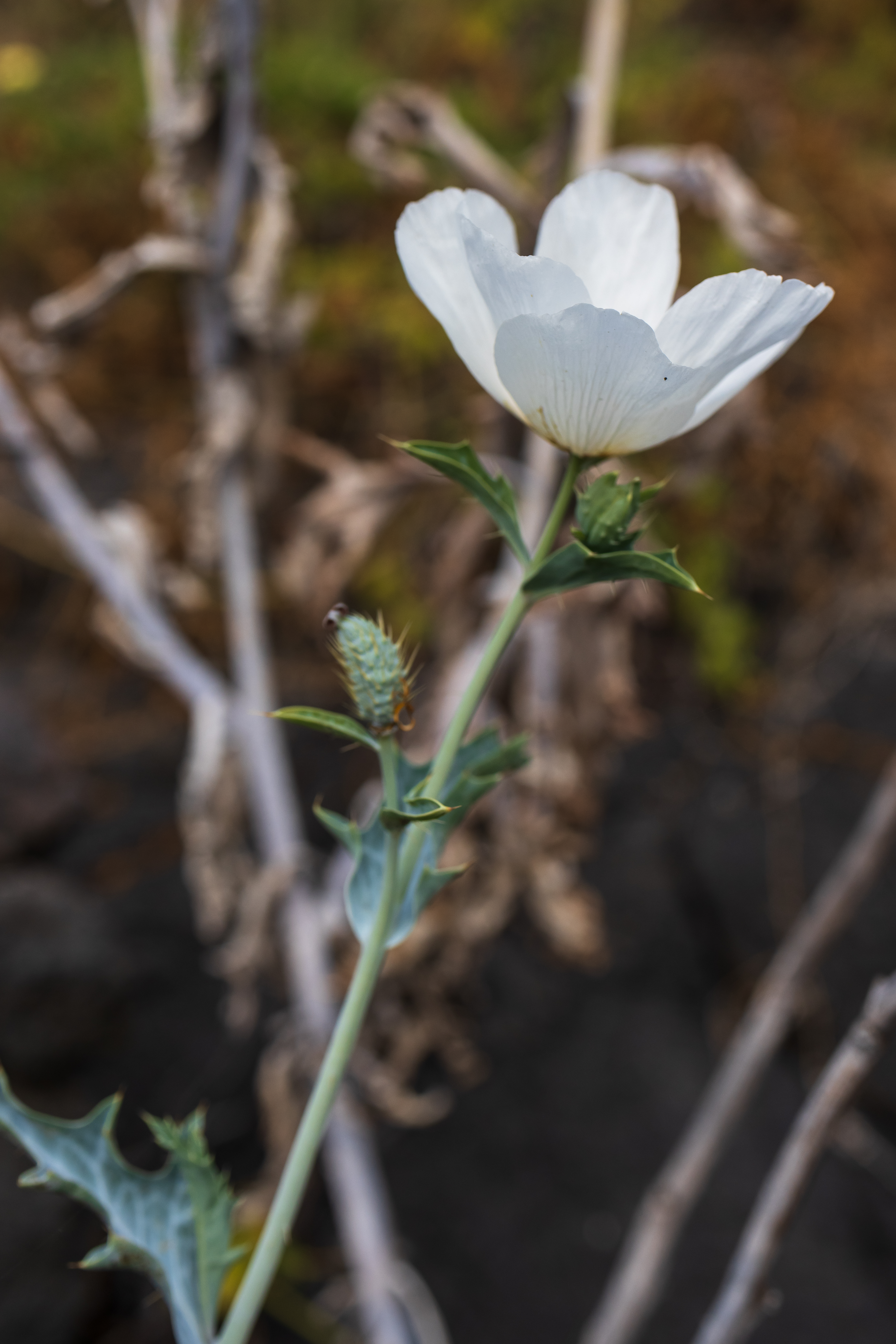 The prickly poppy lives up to its name. The plant is covered with thorns, including on its leaves and buds. The plant is toxic, oozing yellow sap if disturbed. Native Hawaiians used the poppy for medicinal purposes.