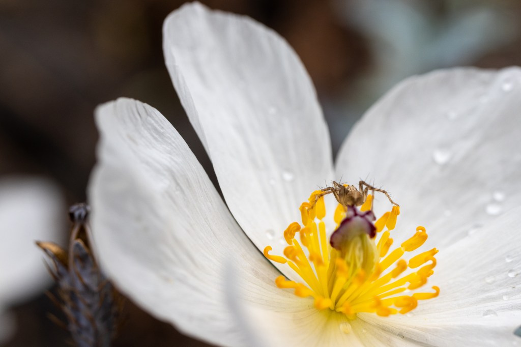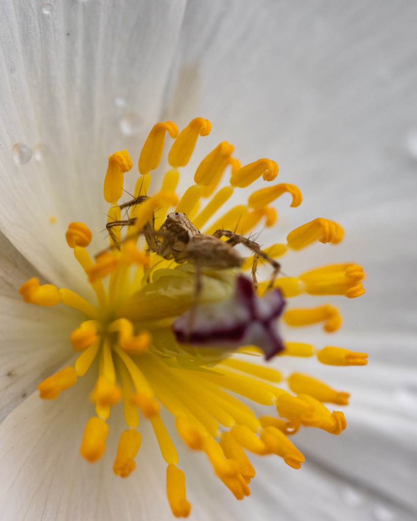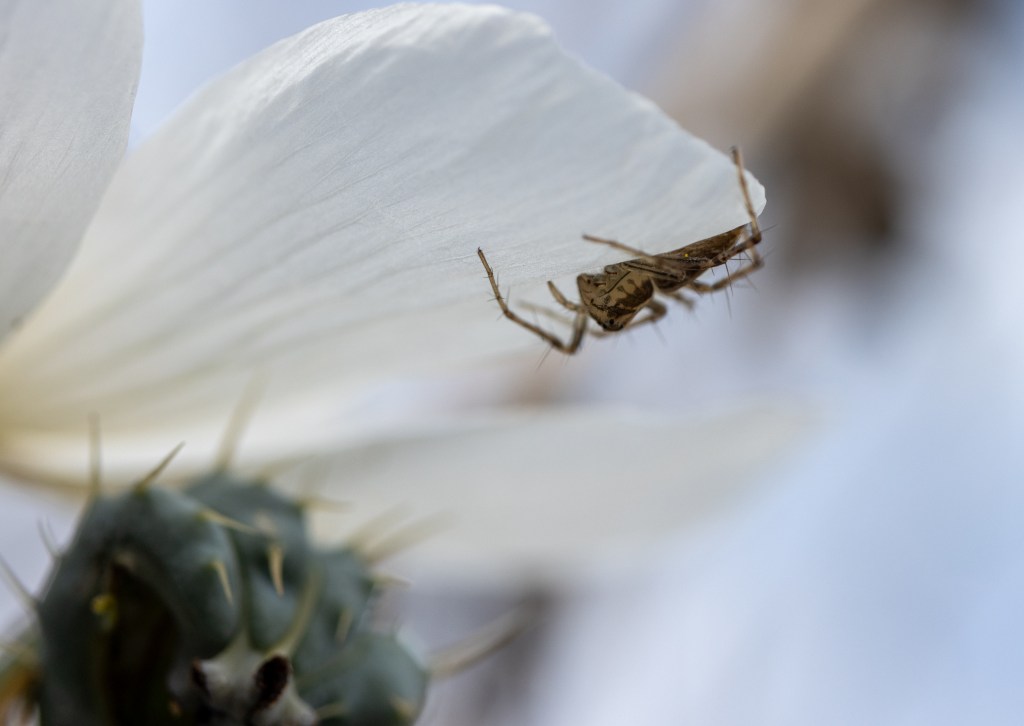 The plants I was able to photograph were growing on the rocky coast of Kaloko-Honokōhau National Historical Park. One of them had what I think was a stripped lynx spider ambushing possible pollinators from inside the flower!